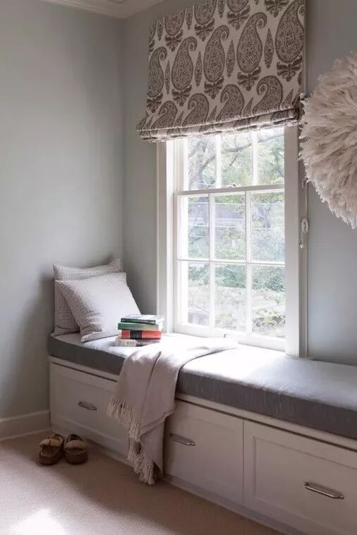 如果对遮光要求不高,而且不喜欢窗帘在侧边遮挡窗户的景观,那么也可以选择卷帘或百叶帘的搭配,使得空间简洁大方。